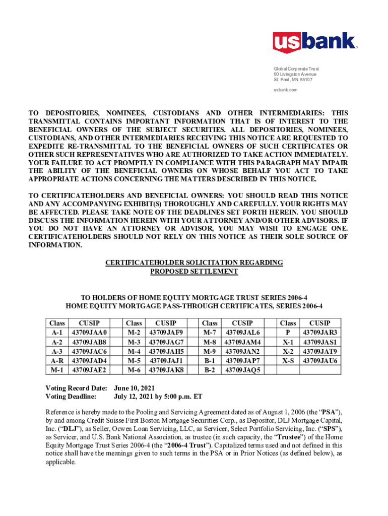 Get the free U.S. Bank Global Corporate Trust Services