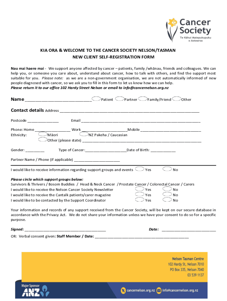 Get the free Self-Registration-Form-Cancer-Society-Nelson-Tasman- ...