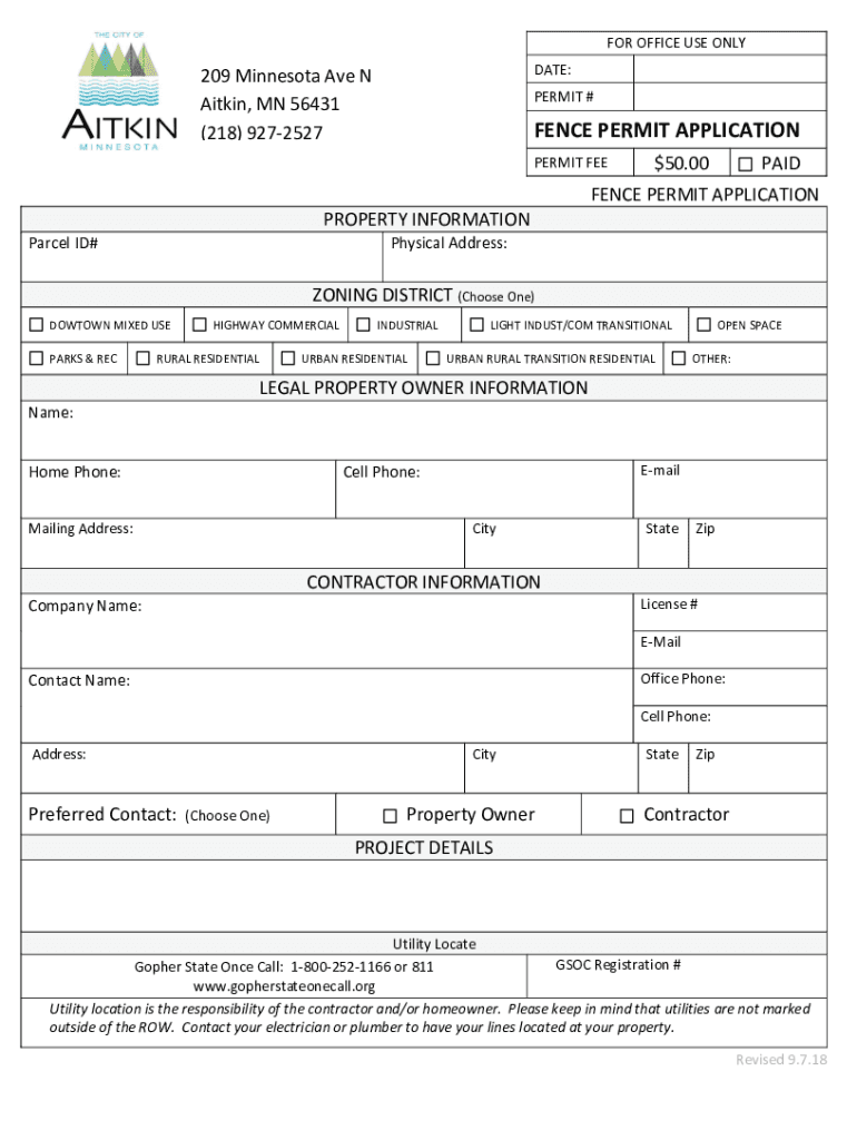 PERMIT FEE$50.00PAIDFENCE PERMIT APPLICATION