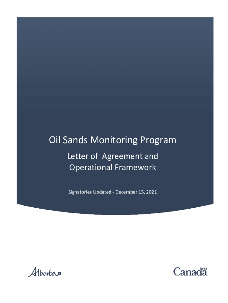 Signatories Updated December 15, 2021Oil Sands Monitoring Program Letter of Agreement and Operational Framework Agreement