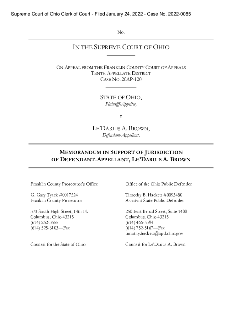 Supreme Court of Ohio Clerk of Court Filed January 24, 2022, Case No. 20220085No.IN THE SUPREME COURT OF OHIO