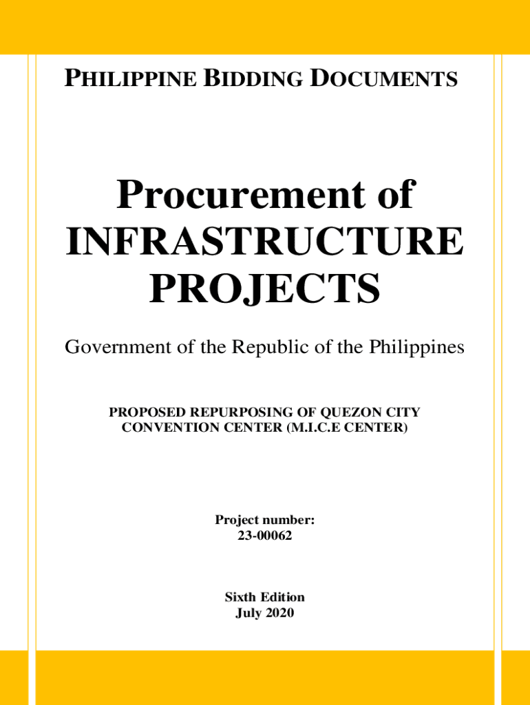 PHILIPPINE BIDDING DOCUMENTSProcurement of INFRASTRUCTURE PROJECTS Government of the Republic of the Philippines PROPOSED REPURPOSING OF QUEZON CITY CONVENTION CENTER (M.I.C.E CENTER)Project number: