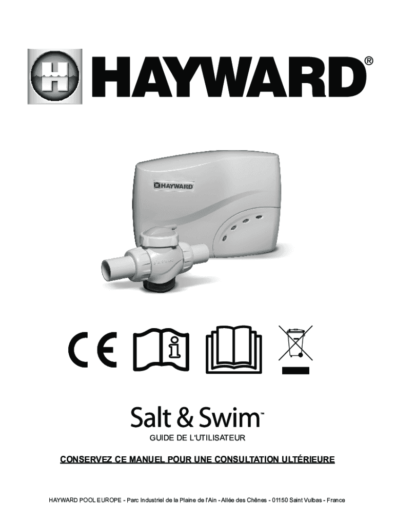 GUIDE DE L\'UTILISATEURCONSERVEZ CE MANUEL POUR ONE CONSULTATION ULTRIEUREHAYWARD POOL EUROPE PARC Industrial DE la Plane DE lain All DES Cones 01150 Saint Bulbs France