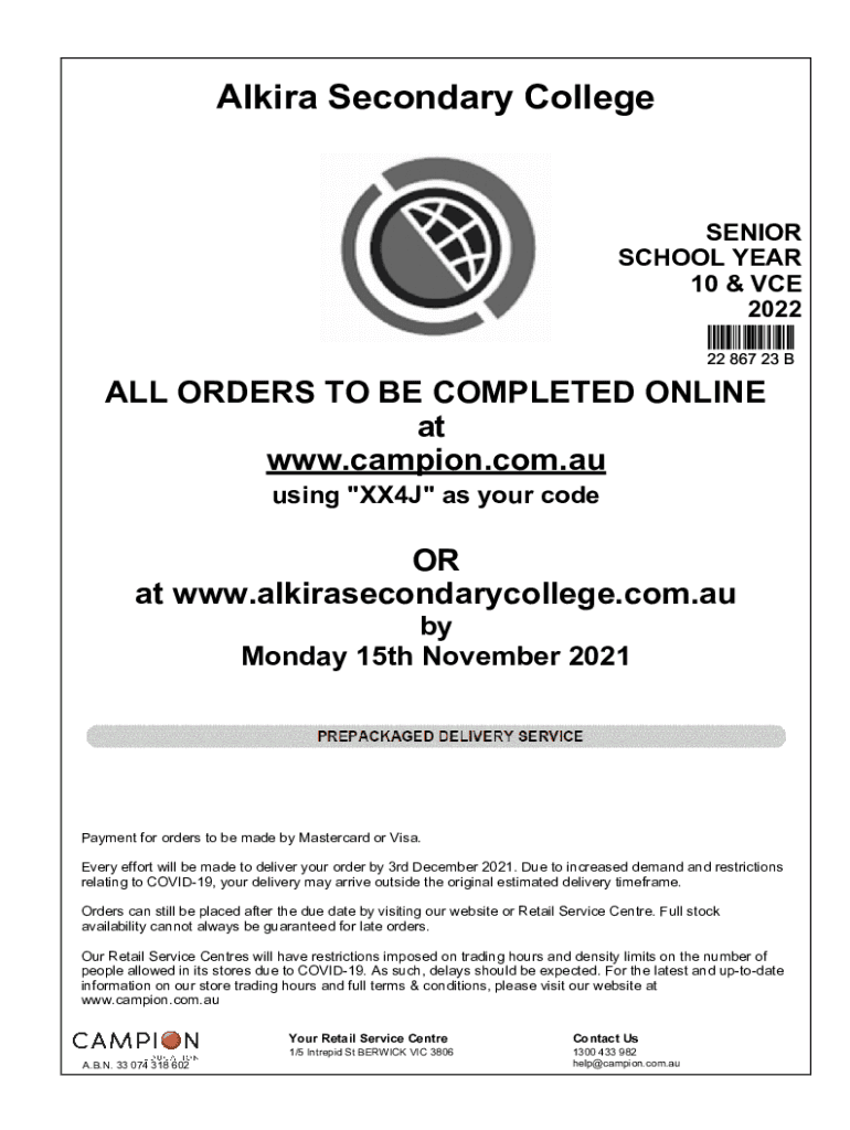 Students who are planning to enroll and attend classes at Alkira Secondary College senior level.