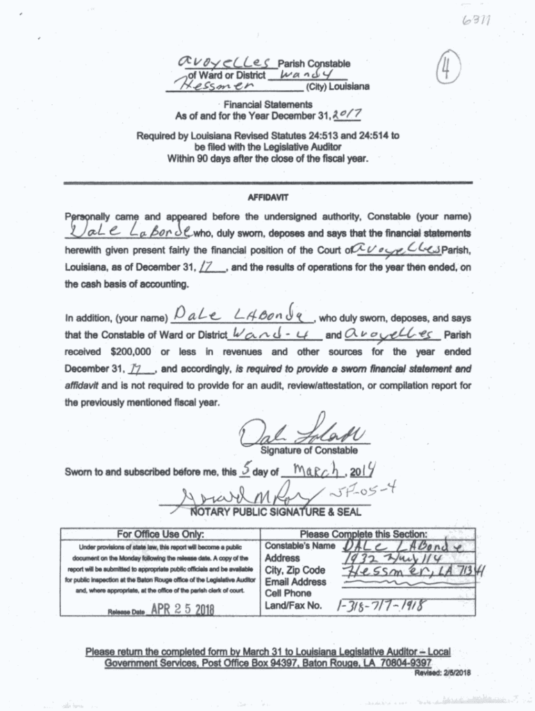Parish Cattle of Ward or District. W\'CN IS\'/ (City) Louisiana Financial Statements As of and for the Year December 31. Required by Louisiana Revised Statutes 24:513 and 24:514 to be filed with the