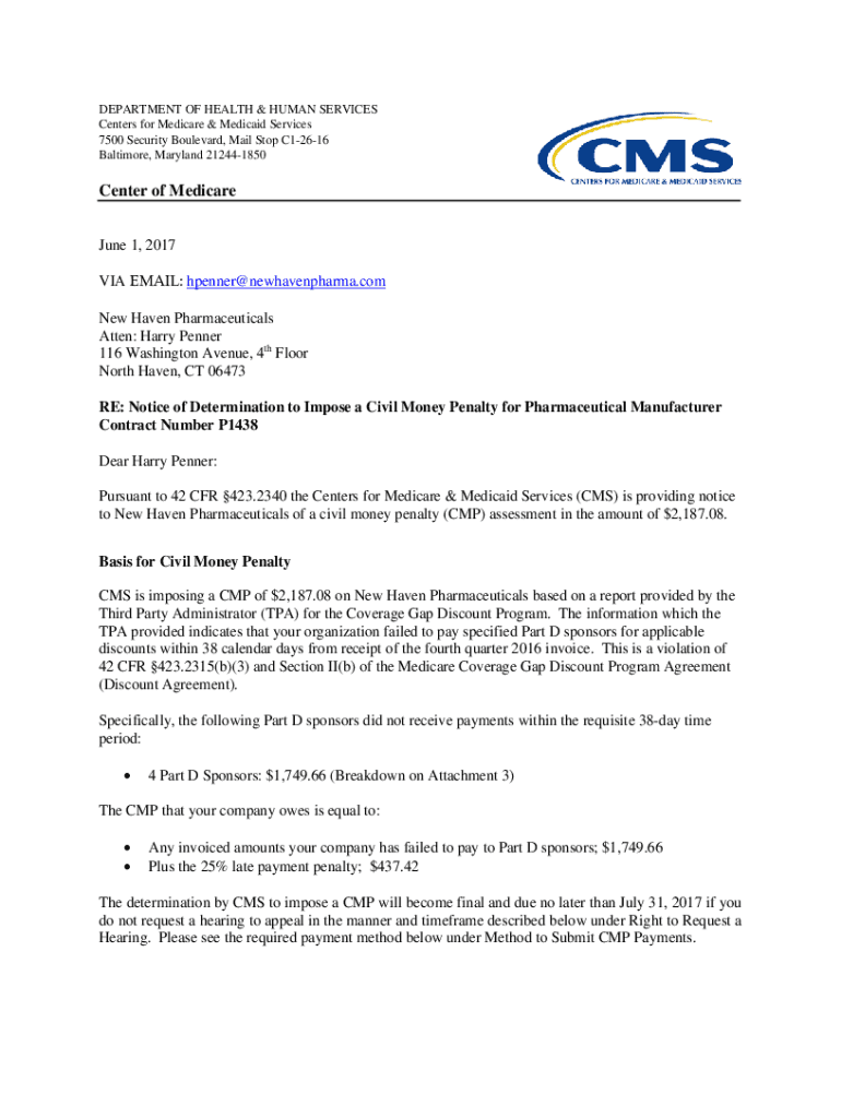 Get the free NewHavenPharmaceuticalsCMP. Notice of Determination to Impose a Civil Money Penalty ...