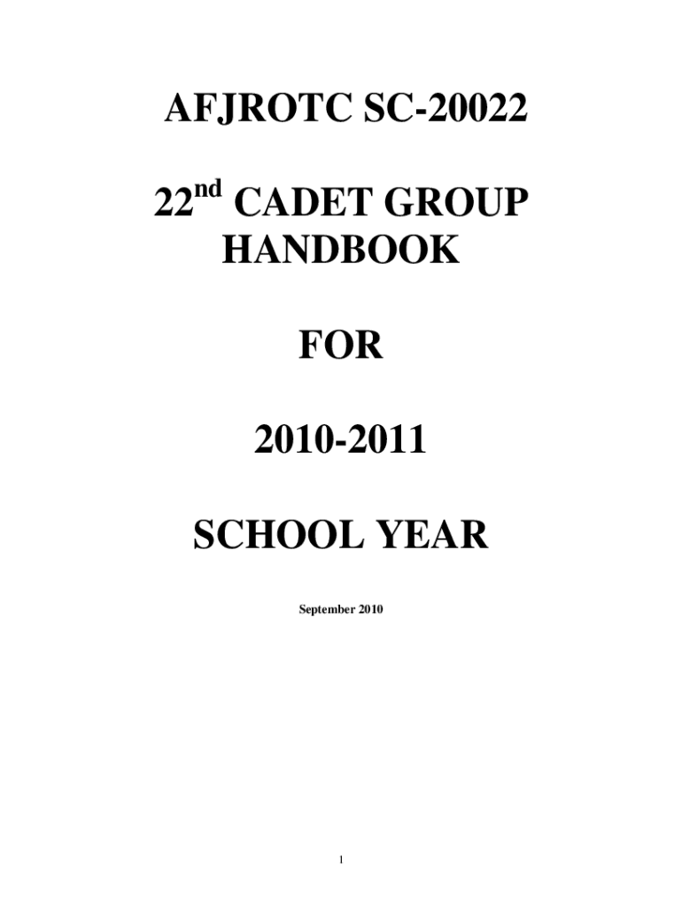 AFJ ROTC SC20022 nd22 CADET GROUP HANDBOOK FOR 20102011 SCHOOL YEAR September 20101TABLE OF CONTENTS PAGE CHAPTER 1: MISSION, ENROLLMENT, CONTRACT, CODES, AND ORGANIZATION 3CHAPTER 2: CLASSROOM RULES/PROCEDURES,