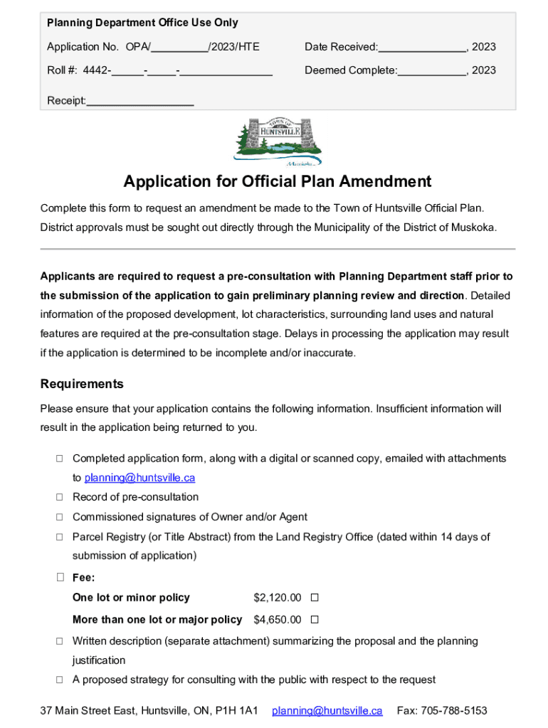 Planning Department Office Use Only Application No. OPA/ Roll #: 4442/2023/HE Receipt:. Date Received:, 2023Deemed Complete:, 2023. Application for Official Plan Amendment Complete this form to request