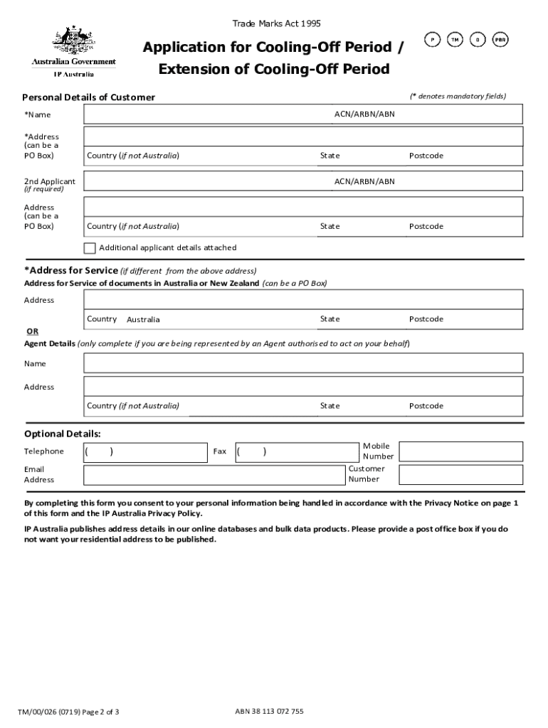 The personal information collected on this form is collected for the purposes of the Trade Marks Act