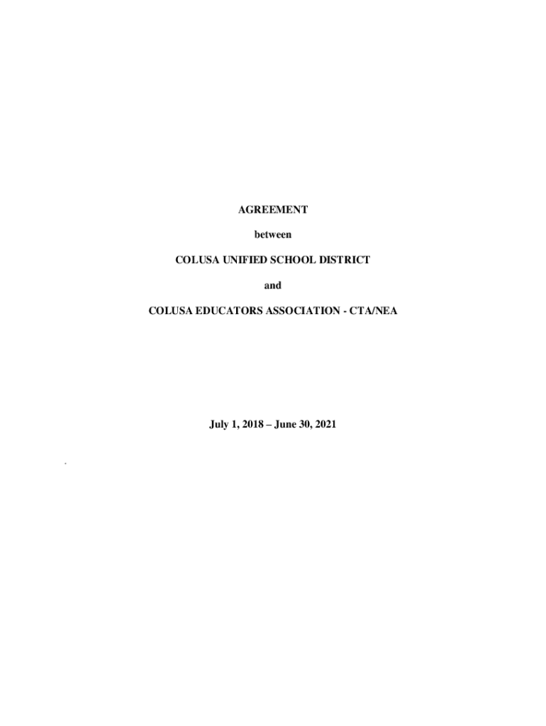 AGREEMENT between COL USA UNIFIED SCHOOL DISTRICT and COL USA EDUCATORS ASSOCIATION CTA/NEA July 1, 2018, June 30, 2021.TABLE OF CONTENTSARTICLE I AGREEMENT 1. Binding Agreement ...............................................................................................12.