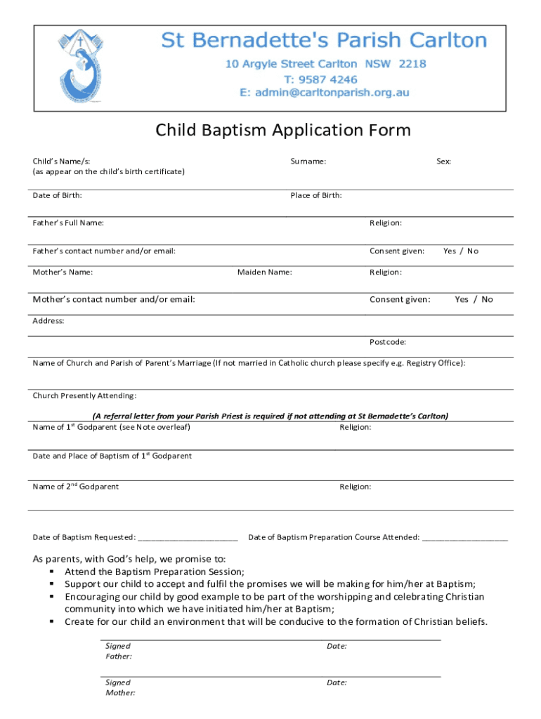Get the free Child Baptism Application Form
