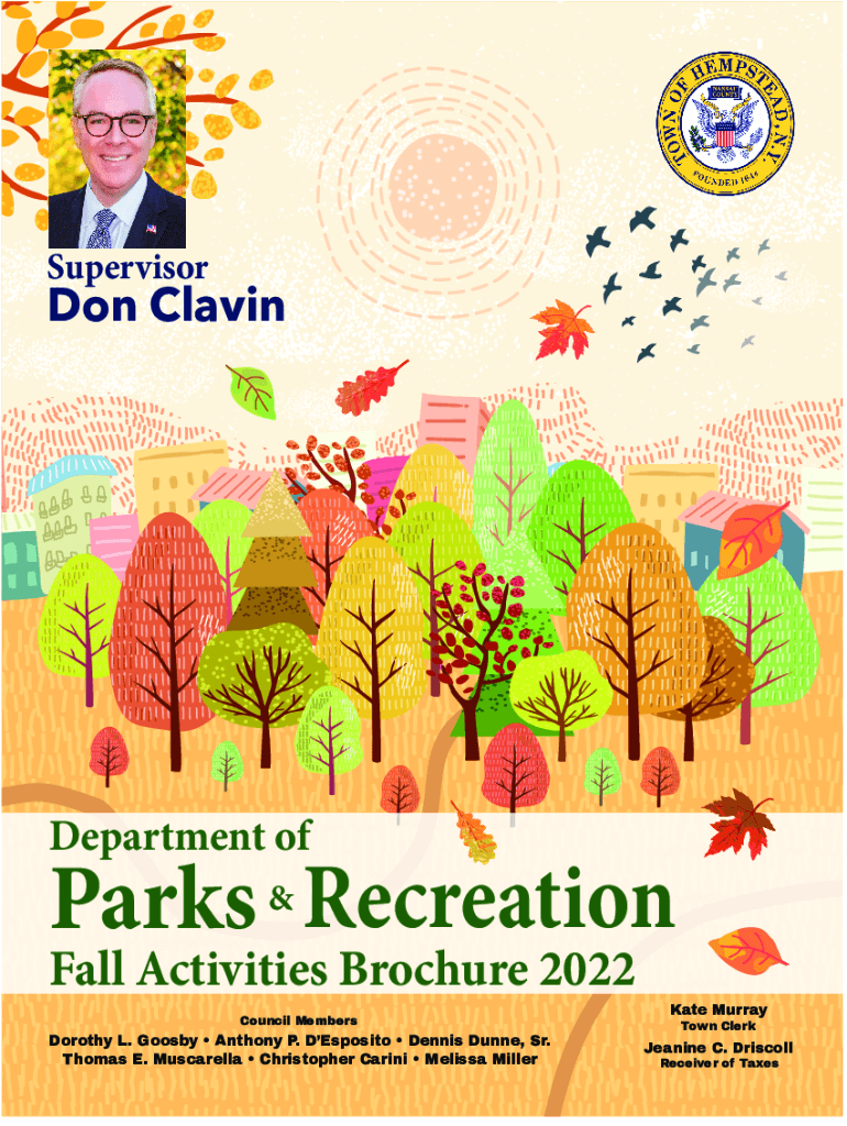 Supervisor Don ClavinDepartment of Parks Recreation fall Activities Brochure 2022 Council Members Dorothy L. Guilty Anthony P. Esposito Dennis Dunne, Sr. Thomas E. Tuscarora Christopher Caring Melissa