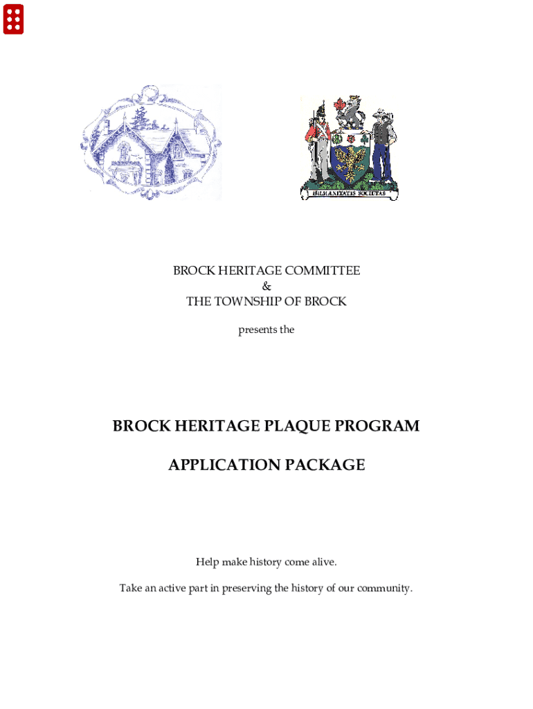 BROCK HERITAGE COMMITTEE & THE TOWNSHIP OF BROCK presents The Rock HERITAGE PLAQUE PROGRAM APPLICATION PACKAGEHelp make history come alive. Take an active part in preserving the history of our community.
