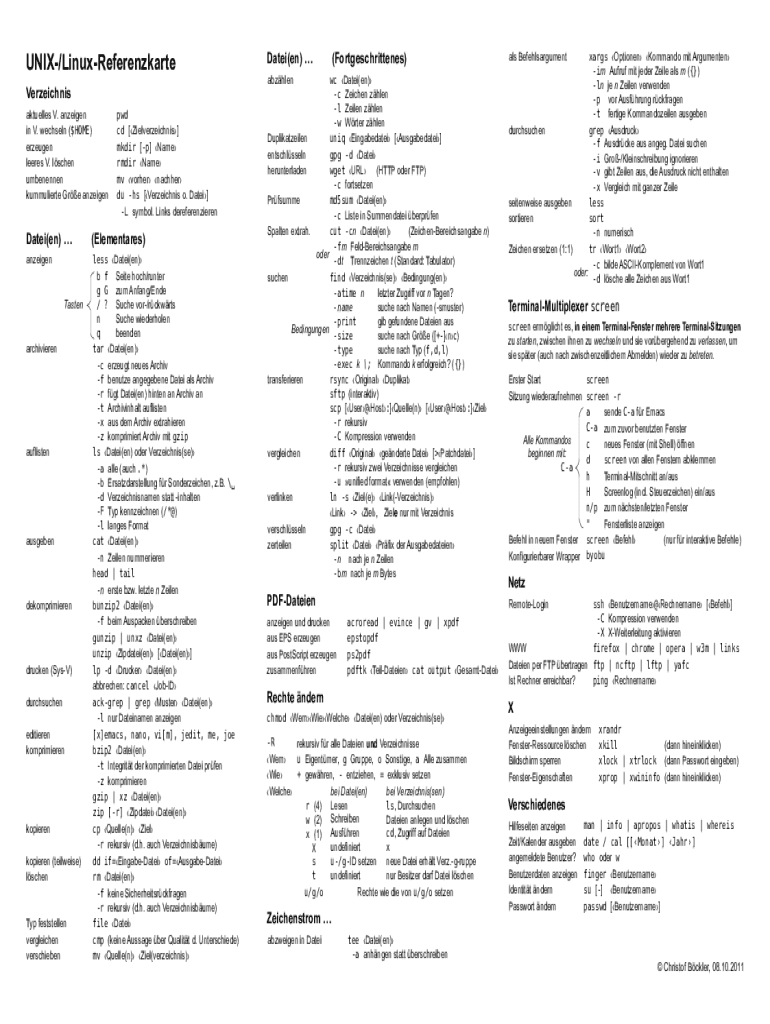 Wer muss unix- und bash-referenzkarte grundlegende einreichen?