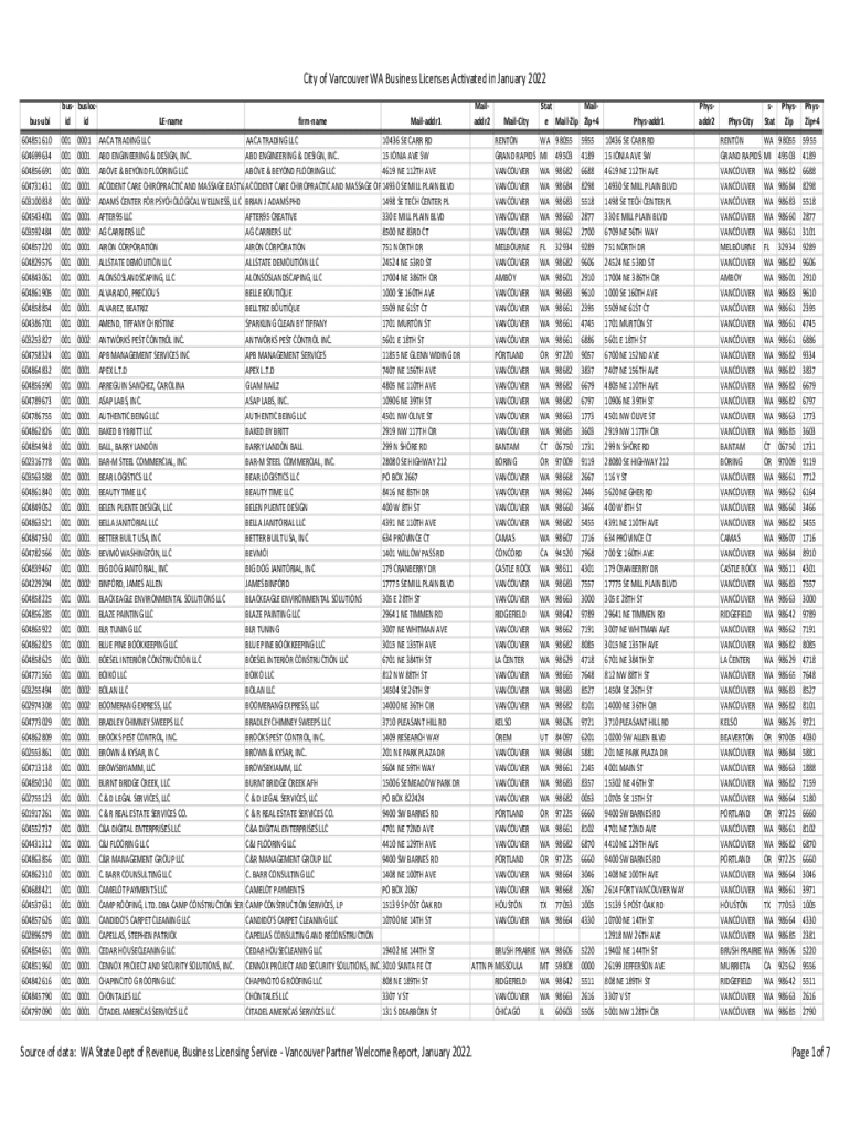 City of Vancouver WA Business Licenses Activated in January 2022 busby 604851610 604699634 604856691 604731431 603100838 604543401 603592484 604857220 604829576 604843061 604861905 604858854 604386701