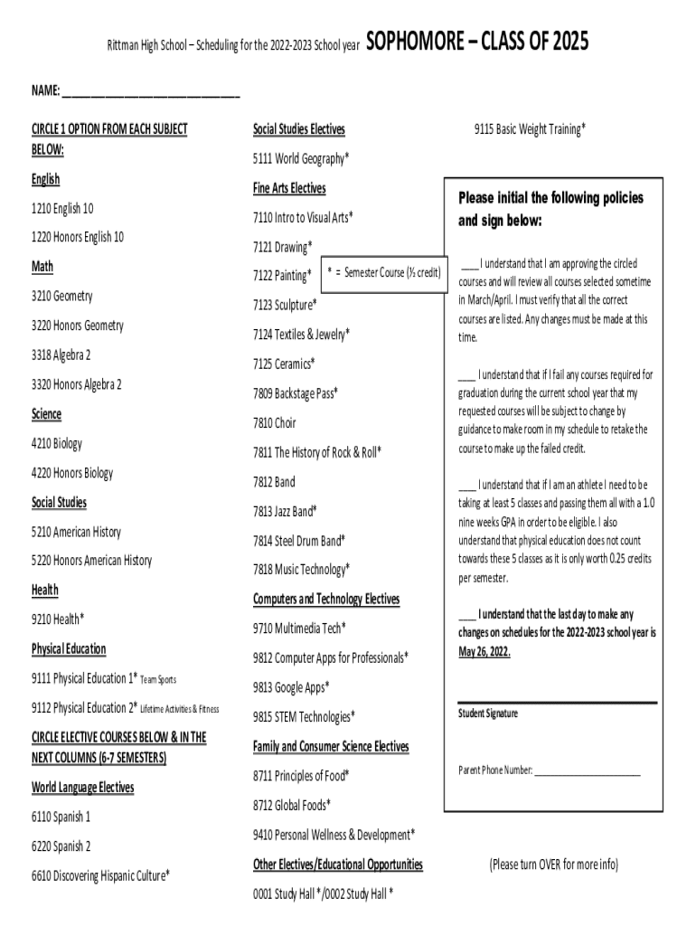 Pittman High School Scheduling for the 20222023 School yearSOPHOMORE CLASS OF 2025NAME: ___