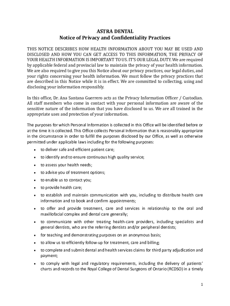 Get the free ASTRA DENTAL Notice of Privacy and Confidentiality Practices