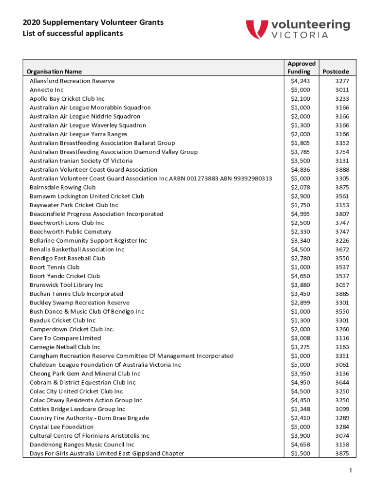 Get the free 2020 Supplementary Volunteer Grants List of successful ...