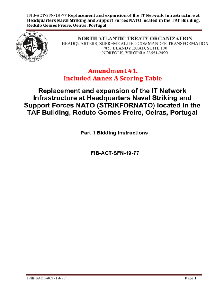 IFIBACTSFN1977 Replacement and expansion of the IT Network Infrastructure at Headquarters Naval Striking and Support Forces NATO located in the TAF Building, Reduce Gomes Frame, Areas, PortugalAmendment