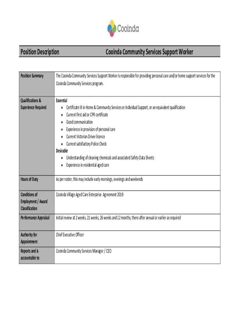 Position Description Cooinda Community is not the form you're looking for?Search for another form here.