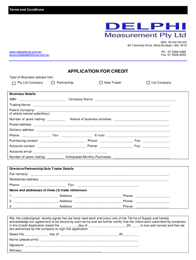 Fax: 075508 2650APPLICATION FOR CREDIT