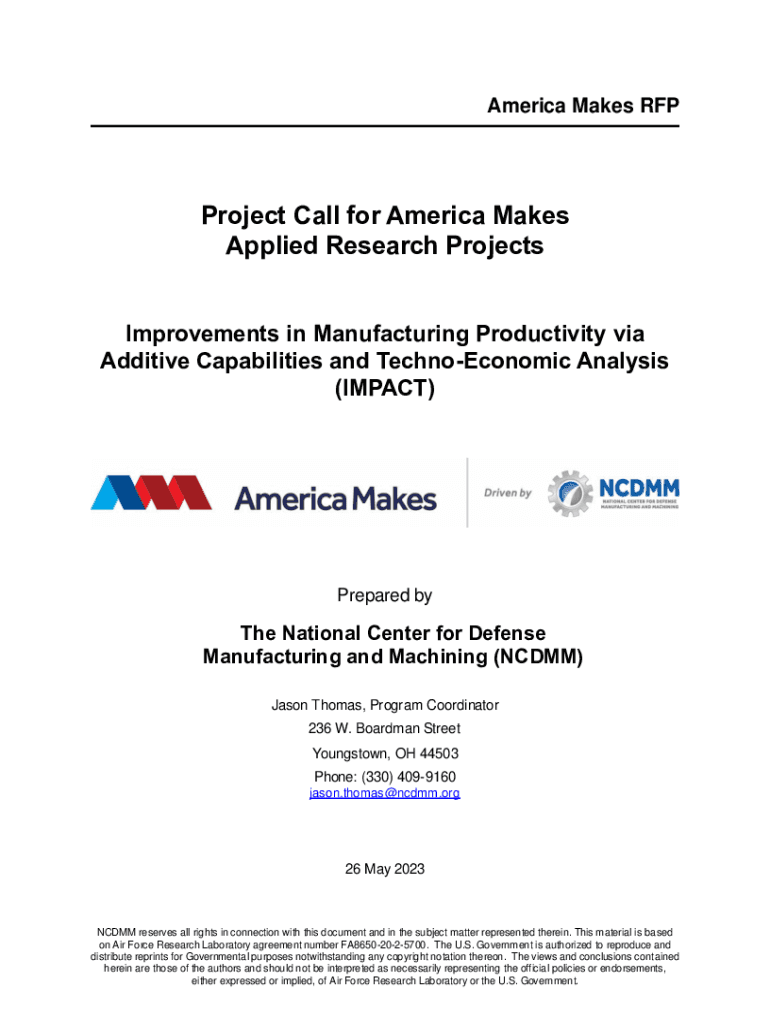 America Makes Project Call for America Makes Applied Research Projects Improvements in Manufacturing Productivity via Additive Capabilities and TechnoEconomic Analysis (IMPACT)Prepared byte National