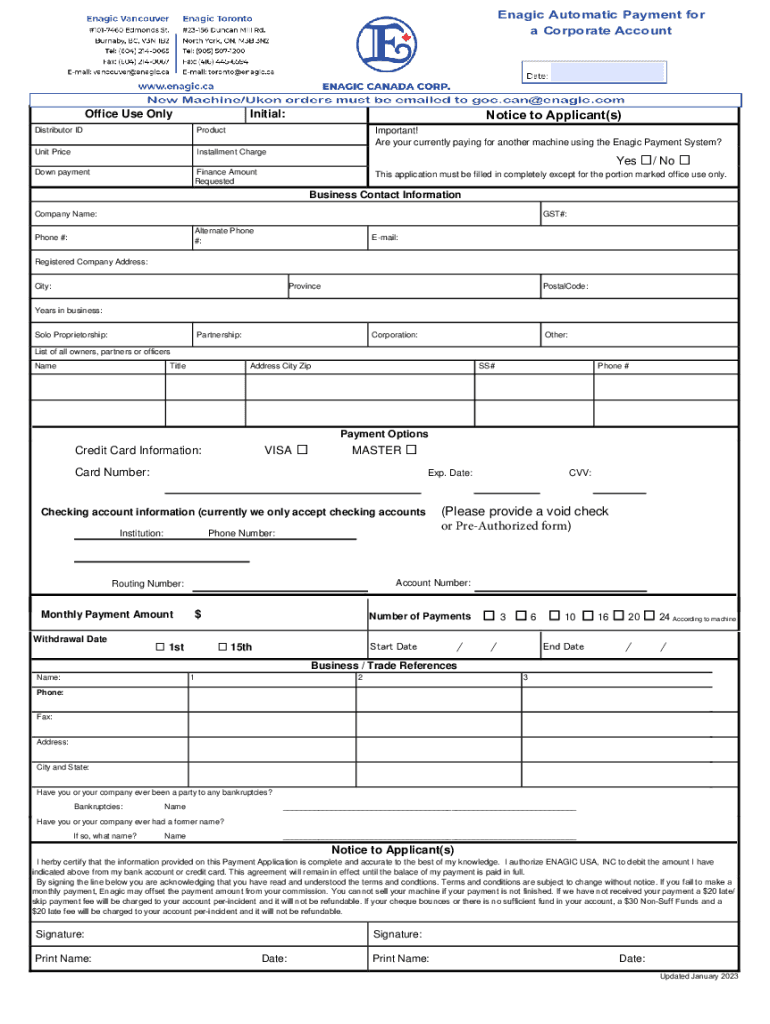 a Corporate AccountOffice Use OnlyNotice to Applicant(s)Initial:Distributor IDProductUnit PriceInstallment Charge Down paymentFinance Amount