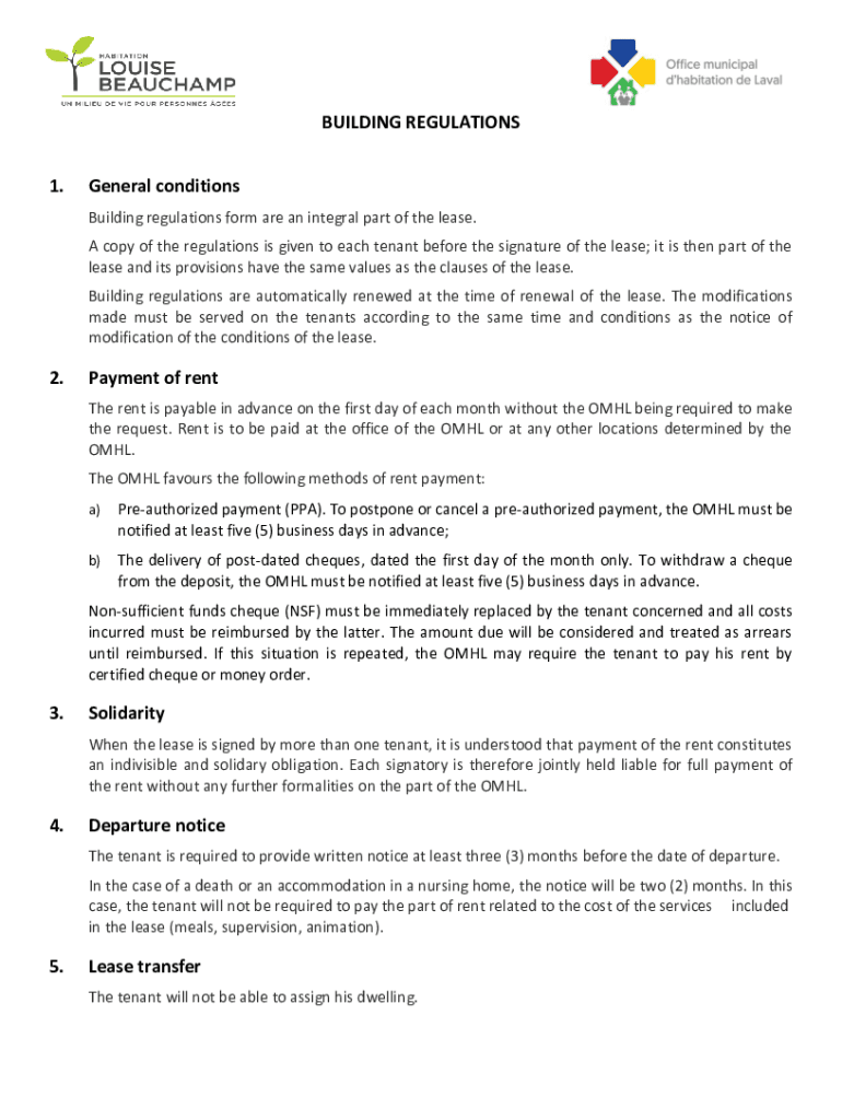 BUILDING REGULATIONS 1. General conditions Building regulations form are an integral part of the lease. A copy of the regulations is given to each tenant before the signature of the lease; it is then