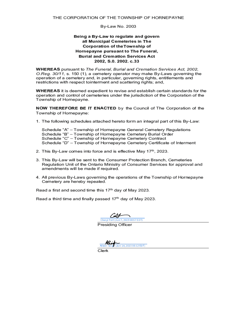 THE CORPORATION OF THE TOWNSHIP OF HORNEPAYNE