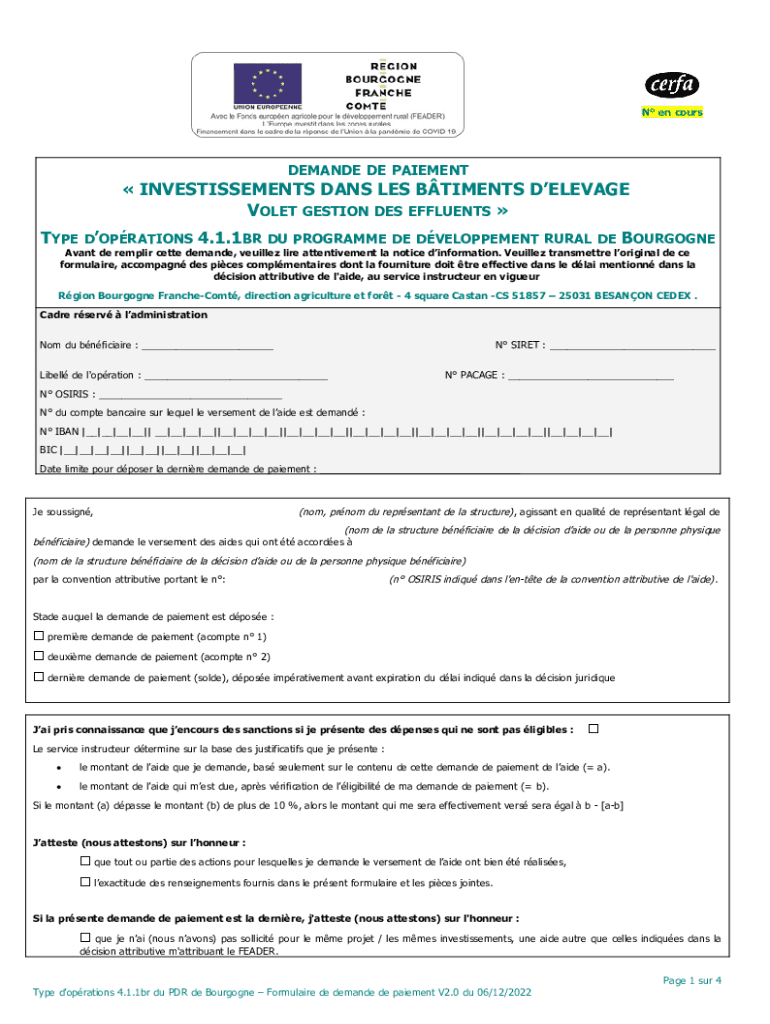N en coursDEMANDE DE PAIEMENTINVESTISSEMENTS DAYS LES ALIMENTS DELEGATE