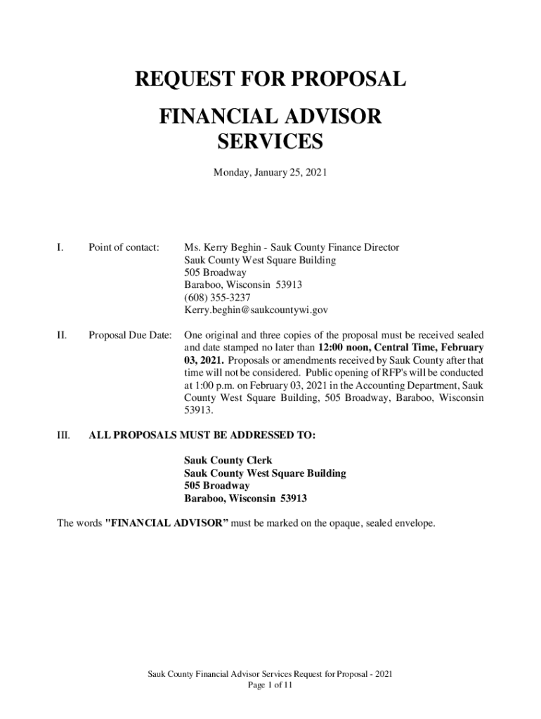 Get the free REQUEST FOR PROPOSAL FINANCIAL ADVISOR ... - Sauk County