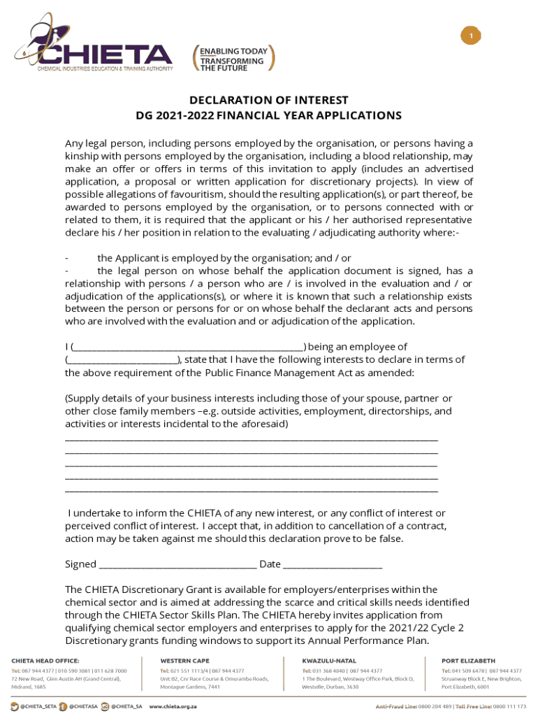 1DECLARATION OF INTEREST DG 20212022 FINANCIAL YEAR APPLICATIONS Any legal person, including persons employed by the organization, or persons having a kinship with persons employed by the organization,