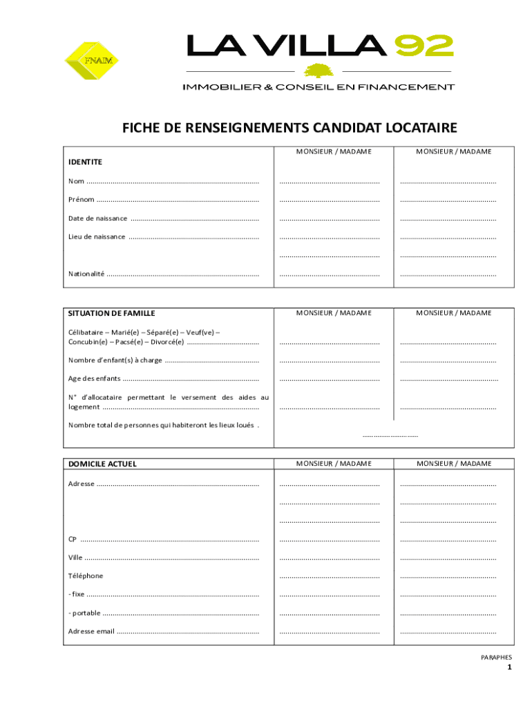 Comment remplir fiche de renseignements caution?