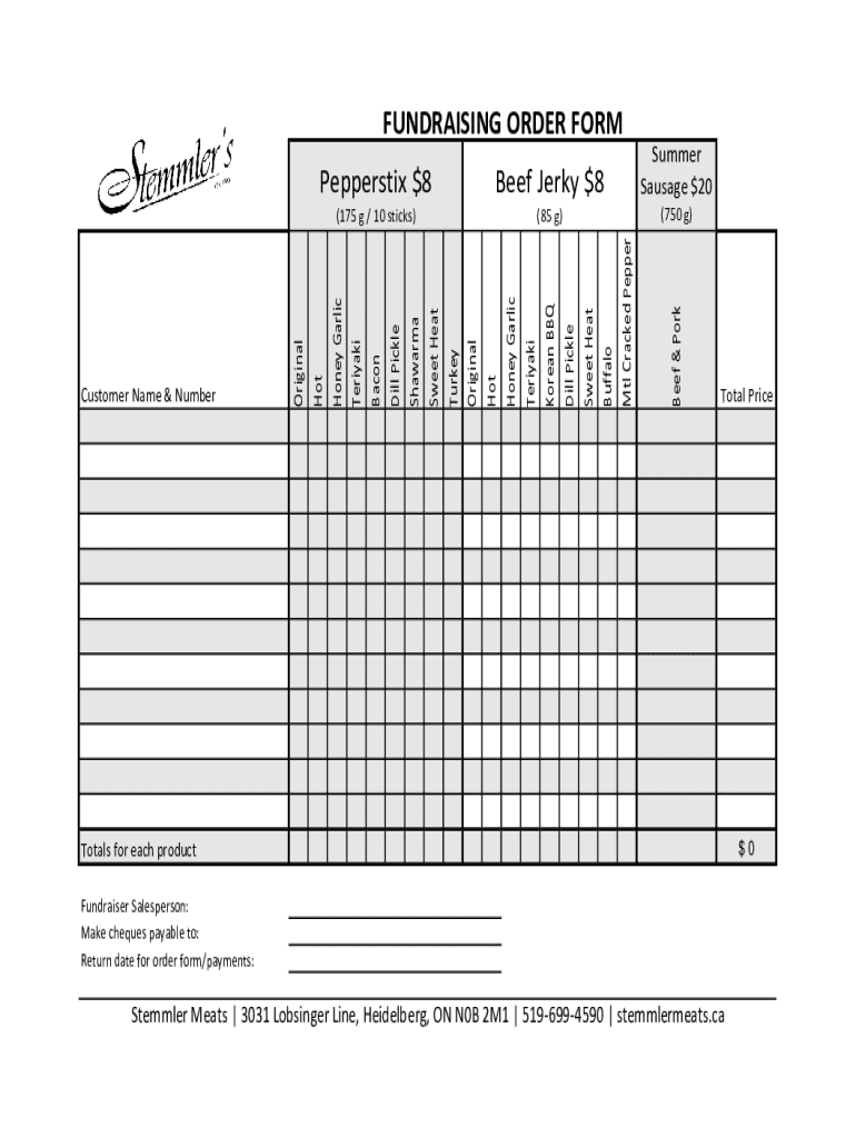 Get the free FUNDRAISING ORDER FORM Pepperstix $8 Beef Jerky $8