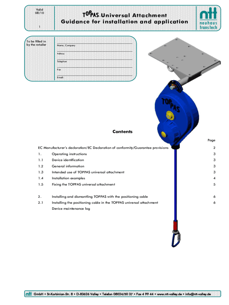Valid 08/10 UniversalAttachment Guidance for installation and application1To be filled in by the retailer___ Name, Company___ Address:___ Telephone___ Fax___ Email:Contents Page EC Manufacturers declaration/EC