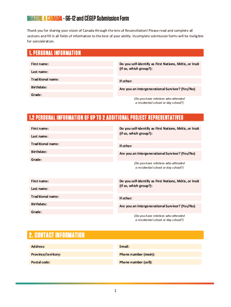 G612 and CEP Submission Form Thank you for sharing your vision of Canada through the lens of Reconciliation! Please read and complete all sections and fill in all fields of information to the best