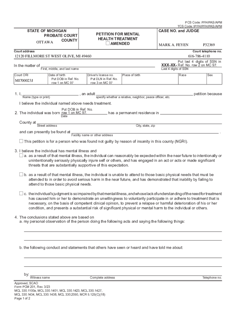 INSTRUCTIONS FOR ADULT MENTAL HEALTH PICKUP COURT STAFF IS PROHIBITED BY LAW FROM GIVING LEGAL ADVICE, IF YOU HAVE ANY LEGAL QUESTIONS DURING THIS PROCESS PLEASE CONTACT AN ATTORNEY. Forms must be