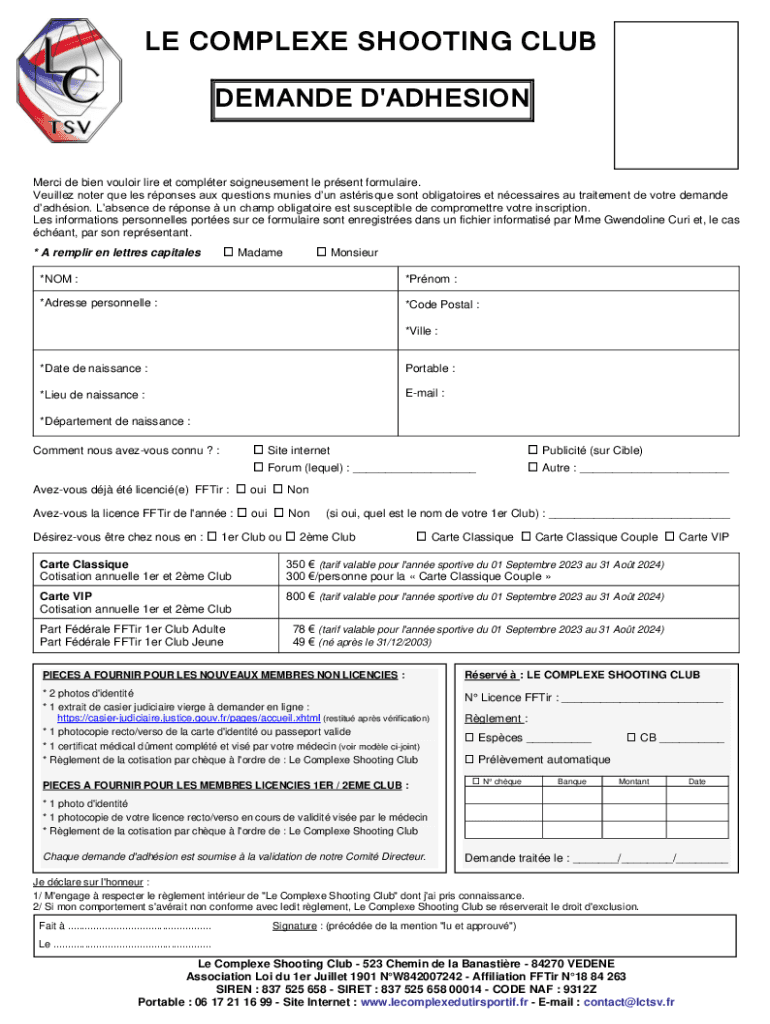Pour remplir le complexe shooting club, il faut fournir des informations précises concernant les installations, les activités proposées, et les mesures de sécurité en place.