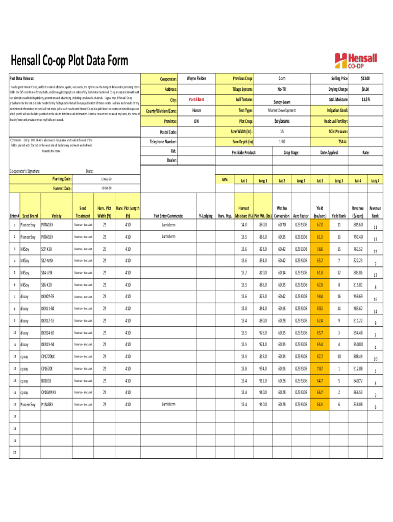 Hens all Coop Plot Data Form Plot Data Release:Cooperator:I hereby grant Hens all Coop, and/or its related affiliates, agents, successors, the right to use the test plot data results pertaining to