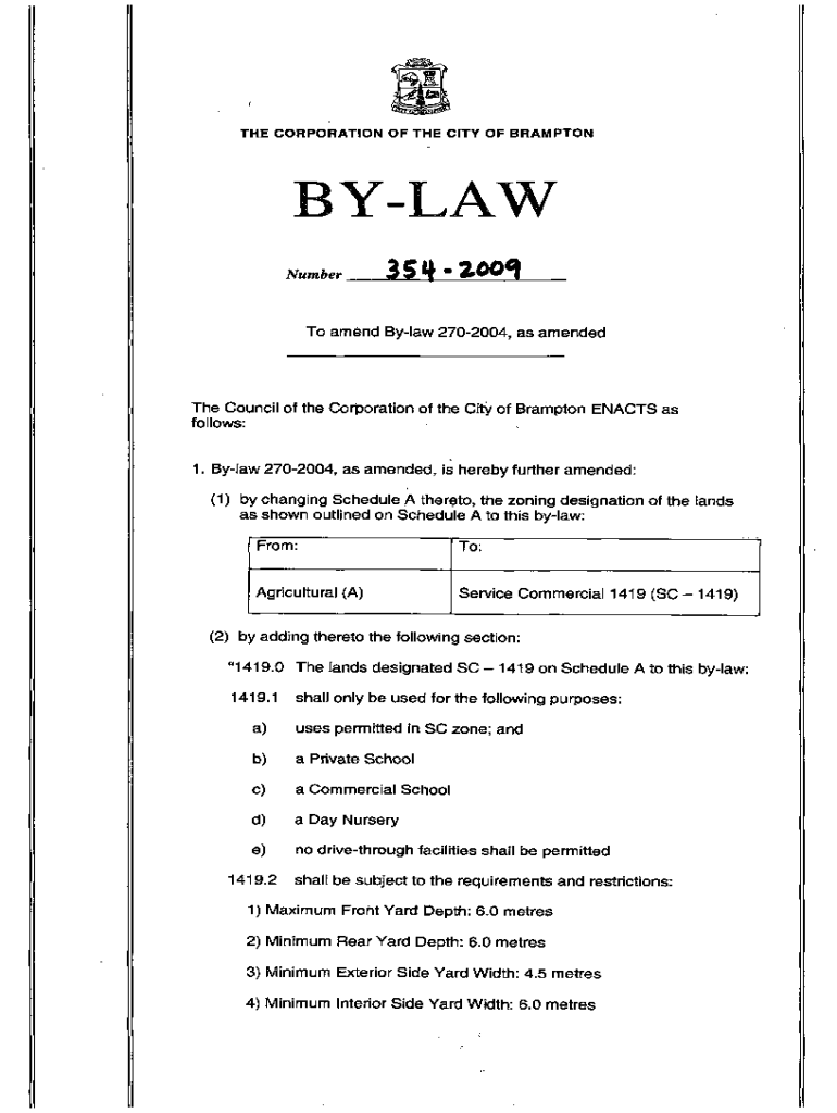 THE CORPORATION OF THE CITY OF BRAMPTONBYLAW Number_.JE....::35\'tlO_O\'l1..._To amend Bylaw 2702004, as amended Council of the Corporation of the City of Brampton ENACTS as follows:1. Bylaw 2702004,