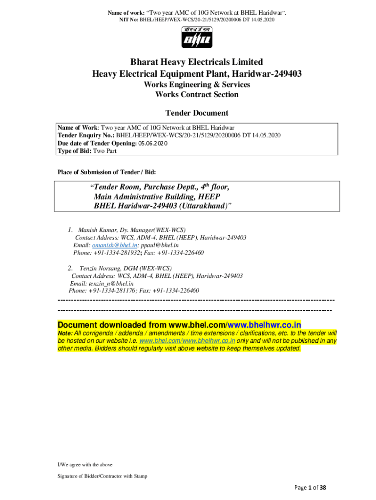 Get the free Name of work: Two year AMC of 10G Network at BHEL Haridwar