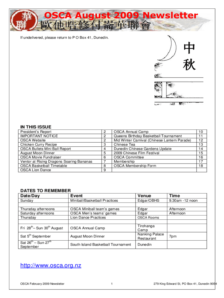 OSCAR August 2009 Newsletter If undelivered, please return to P O Box 41, Dunedin. IN THIS ISSUE Presidents Report IMPORTANT NOTICE OSCAR Website Chicken Curry Recipe OSCAR Bullets Mini Ball Report
