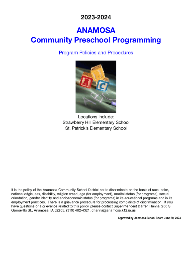20232024 SAMOSA Community Preschool Programming Program Policies and ProceduresLocations include: Strawberry Hill Elementary School St. Patrick's Elementary School It is the policy of the Samosa Community