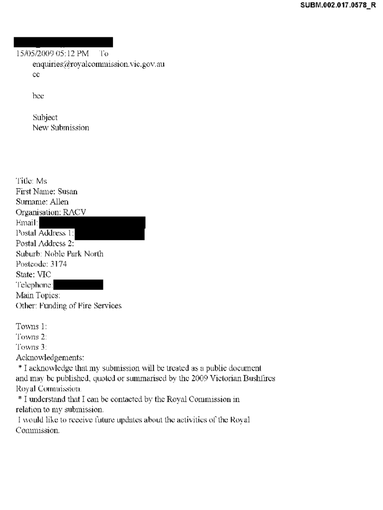Get the free bcc Subject New Submission Title: Ms First Name: Susan Surname ... - royalcommission...