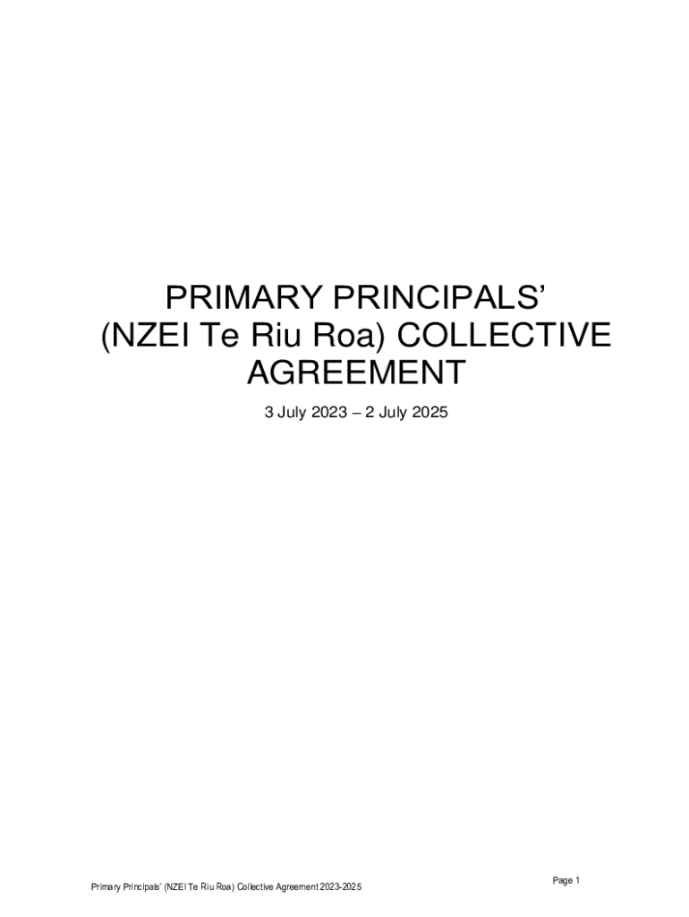 PRIMARY PRINCIPALS (NZ EI Te Rio ROA) COLLECTIVE AGREEMENT 3 July 2023 2 July 2025Primary Principals (NZ EI Te Rio ROA) Collective Agreement 20232025Page 1CONTENTSPart 1Coverage / Term of Agreement1.1
