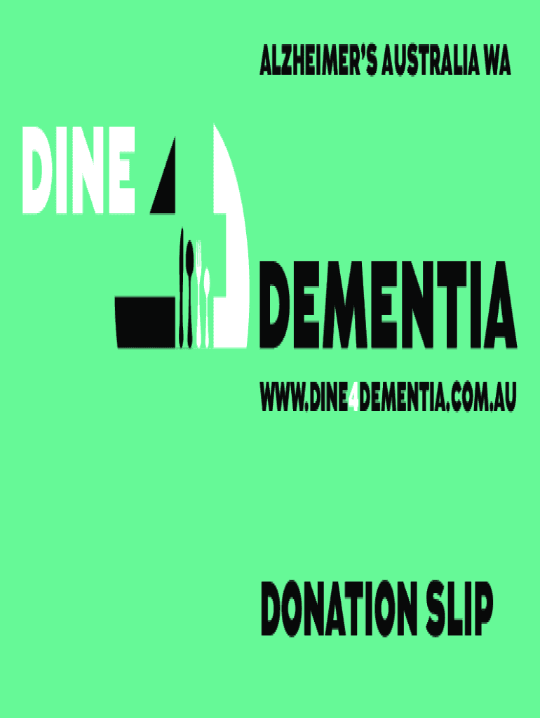 Alzheimer's AUSTRALIA WA WWW.DINE4DEMENTIA.COM.DONATION SLIPPERS ACCEPT MY TAX DEDUCTIBLE DONATION OF $ Name of your host: ___ Your name/Name of guest making the donation: ___ Address: ___Telephone: