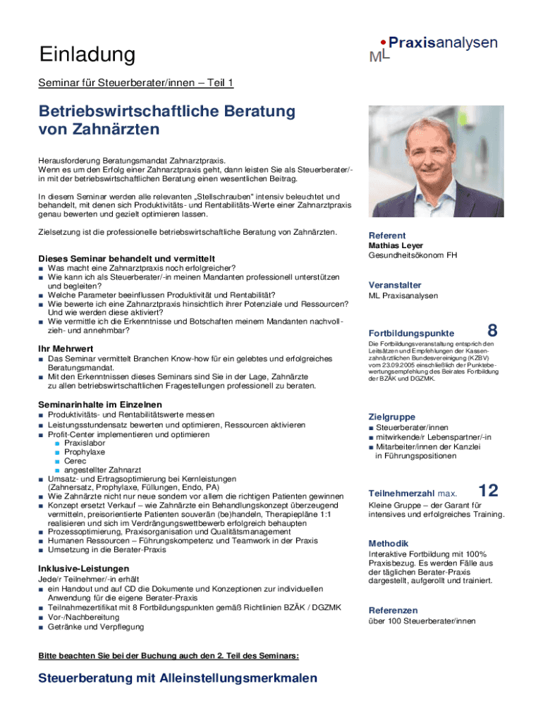 Seminar for Steuerberater/inner Rail 1Betriebswirtschaftliche Berating