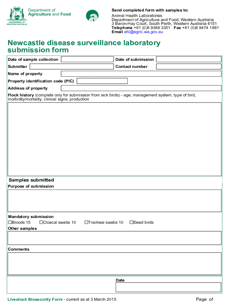 Get the free Newcastle disease surveillance laboratory submission form