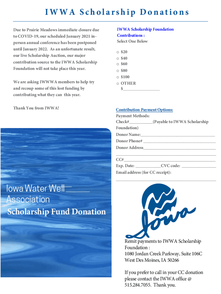 IOWA Scholarship Donations Due to Prairie Meadows immediate closure due to COVID-19, our scheduled January 2021 unperson annual conference has been postponed until January 2022. As an unfortunate