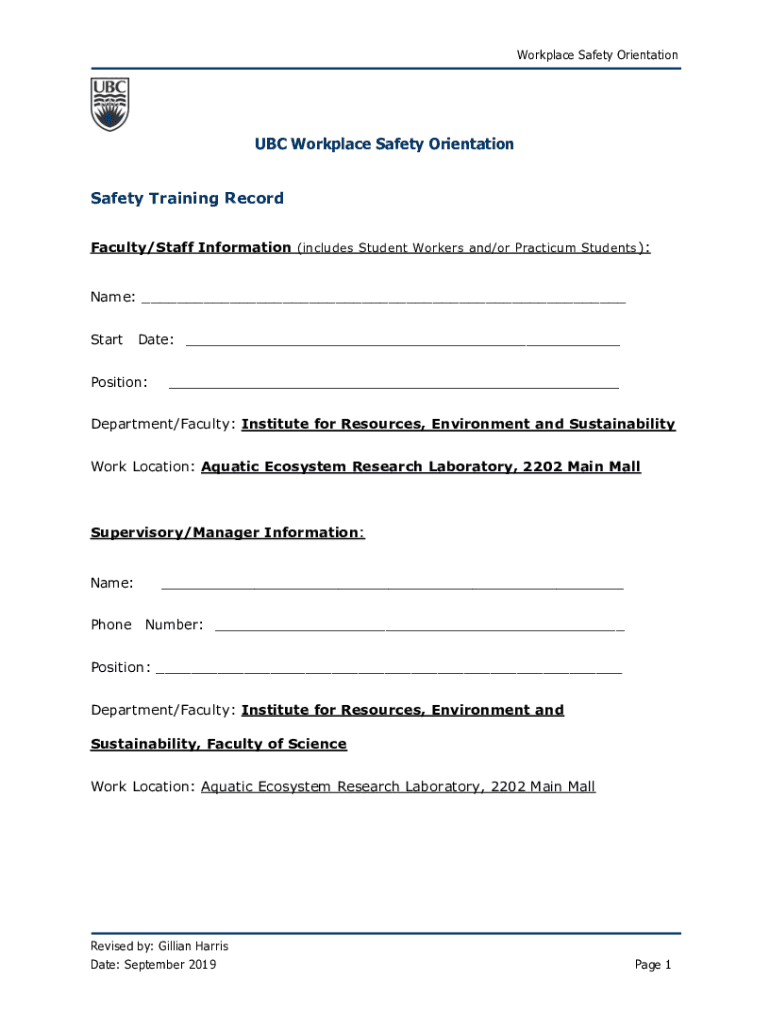 Get the free Health and Safety TrainingCollege of Biological Science - ires2015 sites olt ubc